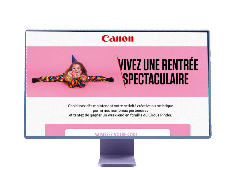 OFFRE : A l’occasion de la rentrée scolaire 2025, nous avons réalisé pour Canon un jeu 100% gagnant avec en gros lot un weekend dans les coulisses du cirque Pinder et des activités créatives/artistiques en illimité dans un réseau de 1200 partenaires.