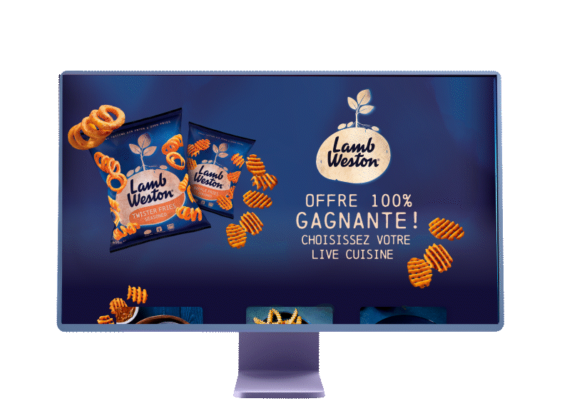Détail du projet OFFRE : Pour animer la marque LambWeston, nous avons réalisé une opération permettant de gagner l’accès à des lives cuisine. PARCOURS CONSOMMATEUR : Le consommateur reçoit un code à valoir sur un site permettant de choisir un des 3 lives organisés. ACTION : Elaboration de 3 recettes autour du produit LambWeston. Réalisation de 3 lives, webdesign, développement et gestion du site web. Tél : 01.41.41.57.83 dbressy@bogoplus.fr 80C Boulevard de Picpus 75012 Paris NOUS REJOINDRE Mentions légales